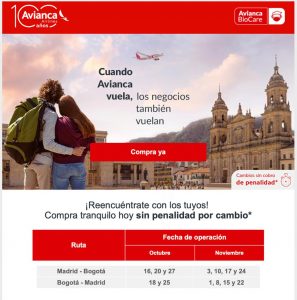 Ahora los vuelos se pueden comprar directamente desde la página web de las aerolíneas que lo ofrecen sin tener que estar previamente inscrito en el Consulado, únicamente debes asegurarte de cumplir con los requisitos de salida de Colombia y entrada a España.